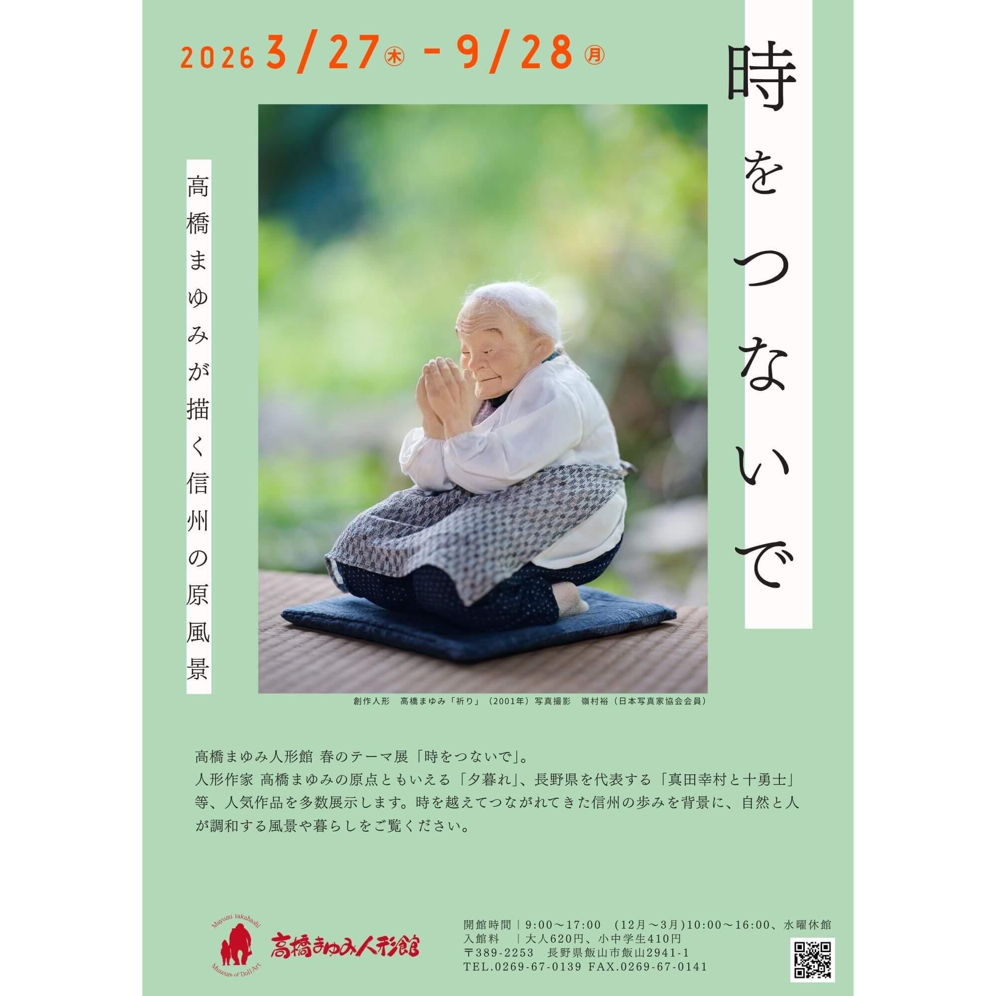 人形作家 高橋まゆみの原点ともいえる「夕暮れ」、長野県を代表する「真田幸村と十勇士」等、人気作品を多数展示します。時を越えてつながれてきた信州の歩みを背景に、自然と人が調和する風景や暮らしを表現。ふるさと信州の魅力を改めて見つめ直すひと時をお楽しみください。